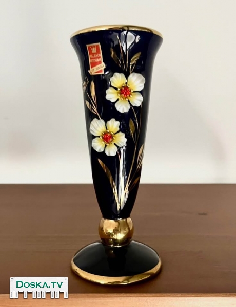 Винтажная ваза Halbach Echt Cobalt кобальтовый синий фарфор с золотым 20 карат покрытием 1960-е годы германия высота 18.5см в идеальном состоянии цена 190 шек петах-тиква самовывоз все вопросы по телефону