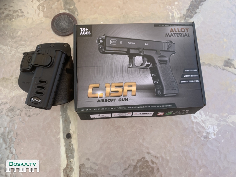 Продается только для тех кто старше 18 лет. Пневматический пистолет GLOK 17 пружинный (взводить затвор после каждого выстрела) с пулями-шариками 4.5 мм (калибр 117 подходит для пуль любой конфигурации, самое дальнее с пульками как в тире) стеклянными, алюминиевыми и металлическими. Расстояние полета стеклянного шарика при выстреле 4-7 метров, алюминиевого 5-7 метров, металлического 7-10 метров. продается со стандартной кобурой пистолета GLOK 17.Цена 700 шекелей. Вместимость магазина пистолета 8 шариков, однако работает лучше, когда в магазине не более 6 шариков